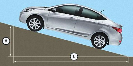 Так, для проверки эффективности работы ручного тормоза нужен ровный уклон, относительное значение угла которого требуется подбирать в соответствии с правилами. По правилам ручной тормоз должен держать легковой автомобиль с полной нагрузкой при уклоне, равным 16%. В снаряженном состоянии — уклон 25% (такому углу соответствует пандус либо подъем эстакады высотой 1,25 м при длине въезда 5 м). Для грузовых автомобилей и автопоездов относительный угол наклона должен составлять 31%.
