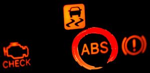 При запуске двигателя на приборной панели кратковременно загорается и тухнет лампочка ABS. Если она не загорается вовсе либо горит постоянно — это указывает на неисправность в системе антиблокировки тормозов.